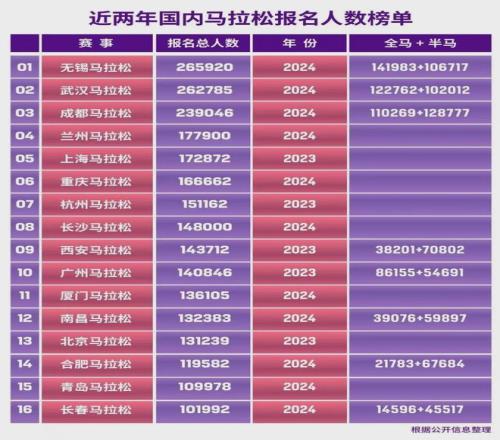 以武漢馬拉松和無錫馬拉松為例,2025年兩地馬拉松報名人數都超過40萬。