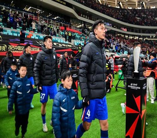 2025年2月7日,超級杯的比賽就已在昆山打響,天氣寒冷,雙方球員出場時都還穿著羽絨服
